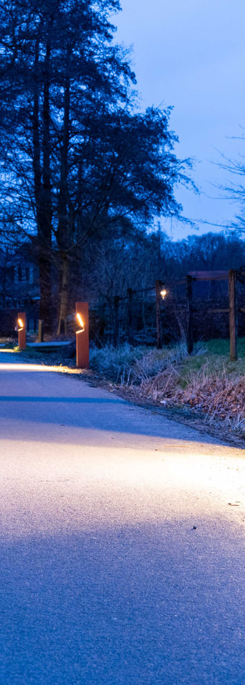 zonder de natuurlijke omgeving te verstoren. Aangezien masten niet geplaatst konden worden, werden deze lage bollard gekozen om de impact van lichtvervuiling in de natuur tot een minimum te beperken. Hetresultaat is een harmonieus samenspel tussen verlichting, esthetiek en natuurbehoud.